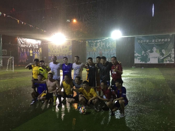 比賽開(kāi)始前,雨絲細(xì)密起來(lái),越下越大,“是等雨停,還是冒雨進(jìn)行?”征求大家的意見(jiàn),來(lái)比賽的隊(duì)員們熱情高漲,“咱們正常踢吧!”于是,一場(chǎng)大雨中的足球比賽開(kāi)始了!