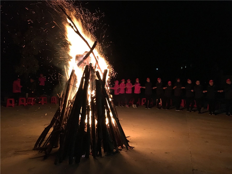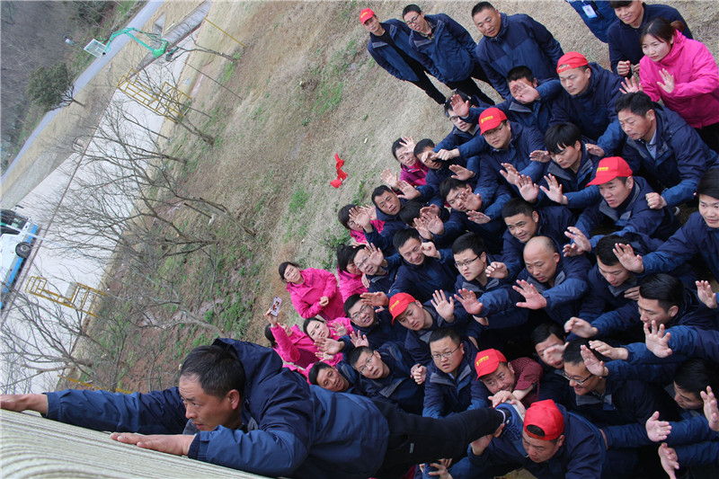 “篝火晚會”和“畢業(yè)墻”給大家留下了最為深刻的印象。夜幕降臨,我們燃起篝火,開心的訴說著一天的激情澎湃與愉悅,歡聲笑語聲隨著火焰節(jié)節(jié)攀升,大家牽起手圍著篝火熱情起舞,做著游戲,感受著蚌埠建材大家庭的溫暖?!爱厴I(yè)墻”是本次活動的最后一個項目,也是最難、最具挑戰(zhàn)性的一項。這個項目要求全體隊員在最短的時間內翻越一面4.2米高的光滑墻面,在此過程中大家不能借助任何外力。起初,每位隊員的內心充滿著顧慮和膽怯。大家相互研究決定采用搭建“人梯”、上推下拉的方式進行翻越。誰做“人梯”?誰做第一個“勇士”?誰又做最后的“逃生者”?令人感動的是,許多男隊員挺身而出第一時間參與,發(fā)揚奉獻精神,最終各隊迅速依據(jù)每個人的具體情況作出了相應的分工,確定了具體的順序。翻墻過程中,兩座“人梯”快速組成,幾名個子高、手長、力氣大的男隊員,首先踏上“人梯”,翻越畢業(yè)墻,留四名隊員在墻頭負責接應其他隊員攀越,其他隊員則自覺舉起雙手,架起“防護網(wǎng)”。腳踩著肩膀、手挽著手……懷著必勝的信心,幾十名隊員依次順利的翻越了高墻,當最后一人成功躍上墻頭的時候,響起了經久不息的掌聲。在短短的22分鐘內,所有參訓員工皆被安全輸送到了高墻之上。