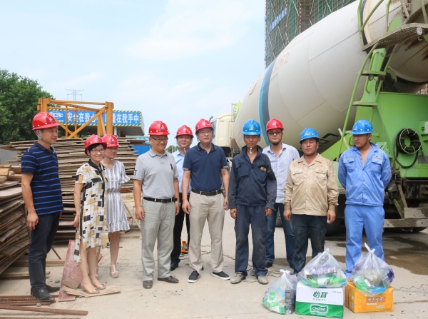 7月26日上午,陶良敬同志再次帶領(lǐng)“送清涼”小組來到十七冶產(chǎn)業(yè)園、安徽水利和順名都城等項目部,慰問在高溫下仍奮戰(zhàn)在施工現(xiàn)場的同事們,為他們送去防暑降溫的物品,送上清涼與關(guān)懷。
