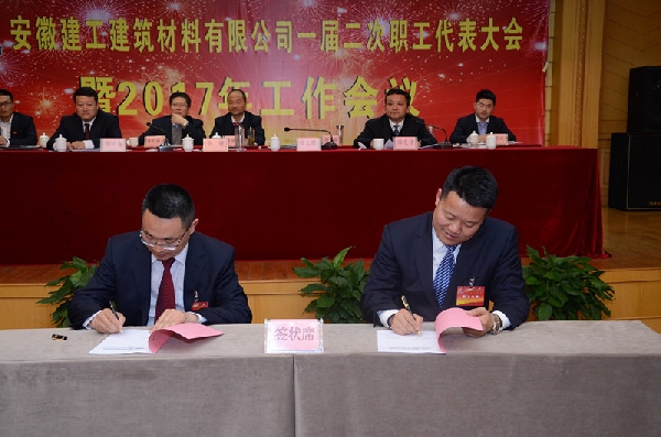 大會聽取并審議通過了《總經(jīng)理工作報告》、《財務工作報告》、《業(yè)務招待費使用情況報告》、《安徽建工建筑材料有限公司薪酬管理制度》、《安徽建工建筑材料有限公司職工聯(lián)席會議制度》,簽訂了目標責任書,表彰了2016年度先進單位、先進集體、先進個人;集團黨委對公司領導班子成員進行了2015—2016年度民主測評。