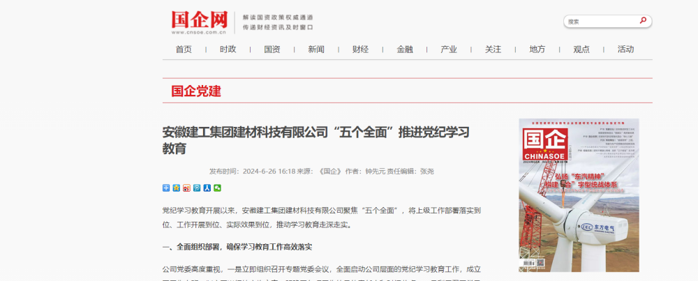 一段時間以來,建工建材兩級黨組織,通過相繼舉辦黨紀學習教育讀書班結(jié)業(yè)式、專題學習習近平總書記關(guān)于全面加強黨的紀律建設(shè)的重要論述、講廉潔故事、過政治生日、上專題黨課等多種方式,扎實開展黨紀學習教育工作,激發(fā)全體黨員干部學習積極性,推進黨紀學習教育走深走實,相關(guān)學習工作情況被國企網(wǎng)黨建頻道轉(zhuǎn)載。