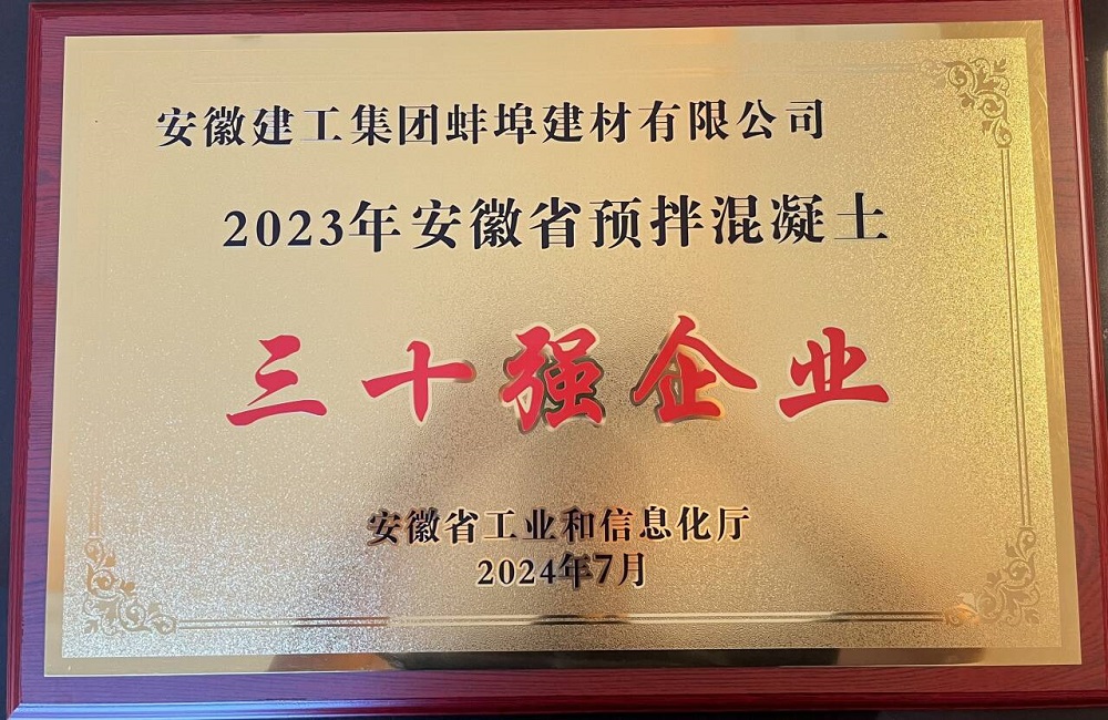 【喜報(bào)】蚌埠建材榮獲2023年安徽省預(yù)拌混凝土企業(yè)30強(qiáng)稱(chēng)號(hào)