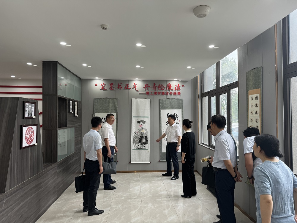 由建工建材黨委主辦、蚌埠建材黨支部承辦的主題為“筆墨書正氣 丹青繪廉潔”廉潔書畫作品展,經(jīng)過為期一個(gè)多月的精心籌備,7月16日起在蚌埠建材淮上中心站一樓大廳展出。開展當(dāng)天,建工建材黨委委員、副總經(jīng)理、工會(huì)主席邵佳、建工建材機(jī)關(guān)部分人員、嘉和建筑部分人員,蚌埠建材全體黨員前來觀展學(xué)習(xí)。