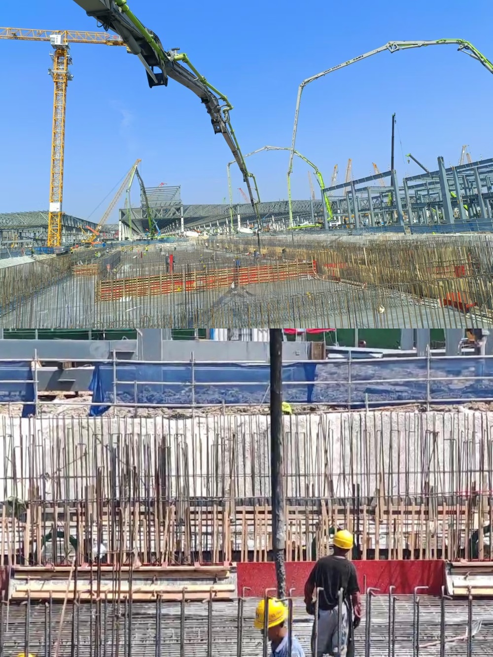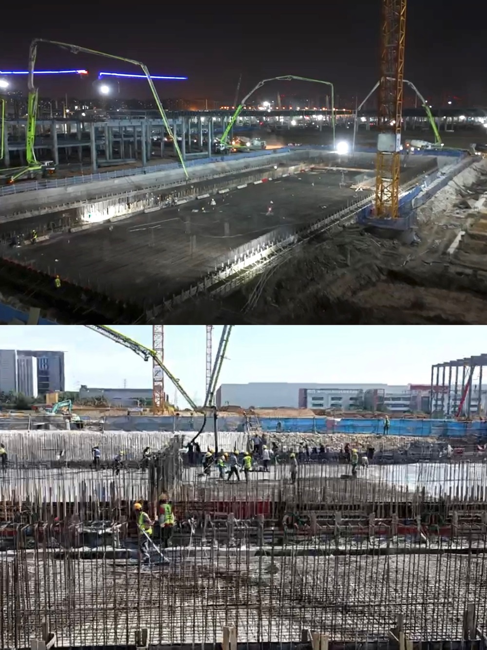 此次大體積筏板澆筑時(shí)間緊、任務(wù)重,難度大,澆筑期間最高溫度達(dá)38℃,持續(xù)高溫更是為澆筑任務(wù)帶來極大挑戰(zhàn)。為確保倉面順利澆筑,公司領(lǐng)導(dǎo)班子帶隊(duì)進(jìn)行現(xiàn)場踏勘,并結(jié)合現(xiàn)場實(shí)際組織制定專項(xiàng)澆筑方案以及應(yīng)急預(yù)案。澆筑期間,各站點(diǎn)協(xié)同合作,各部門全程跟蹤服務(wù),做好材料保供、現(xiàn)場信息反饋、生產(chǎn)運(yùn)輸、車輛統(tǒng)籌調(diào)度等工作,在全體人員的共同努力下,僅20小時(shí)完成澆筑,較原計(jì)劃提前10小時(shí)完成,高效率保障服務(wù)得到施工方高度認(rèn)可。