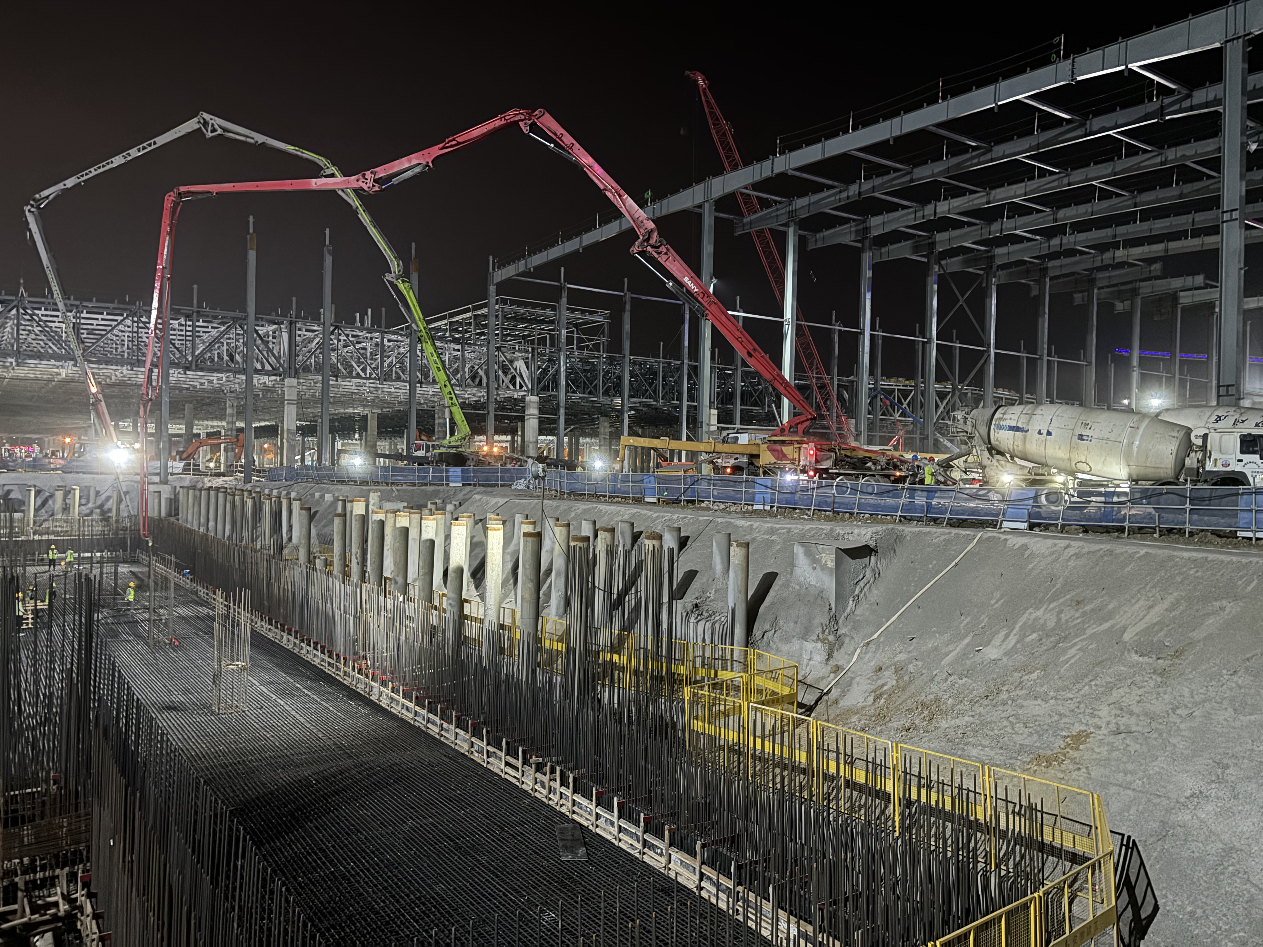 2024年9月8日22時(shí)35分,經(jīng)過(guò)28小時(shí)的持續(xù)鏖戰(zhàn),大眾產(chǎn)業(yè)園項(xiàng)目 13144方大體量混凝土澆筑任務(wù),比預(yù)定計(jì)劃提前8小時(shí)完成,本次澆筑投入攪拌車140輛,泵車13臺(tái),是建工建材在合肥地區(qū),體量最大、用時(shí)最短的一次澆筑任務(wù)。