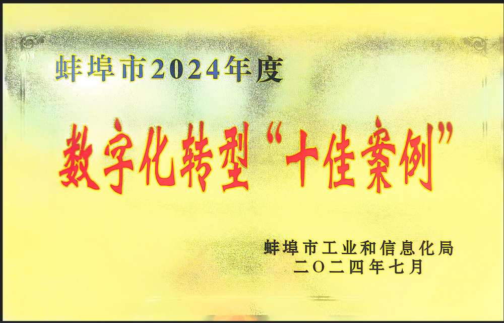 近日,安徽建工新材料科技有限公司被蚌埠市工業(yè)和信息化局授予蚌埠市2024年度數(shù)字化轉(zhuǎn)型“十佳案例”榮譽稱號。
