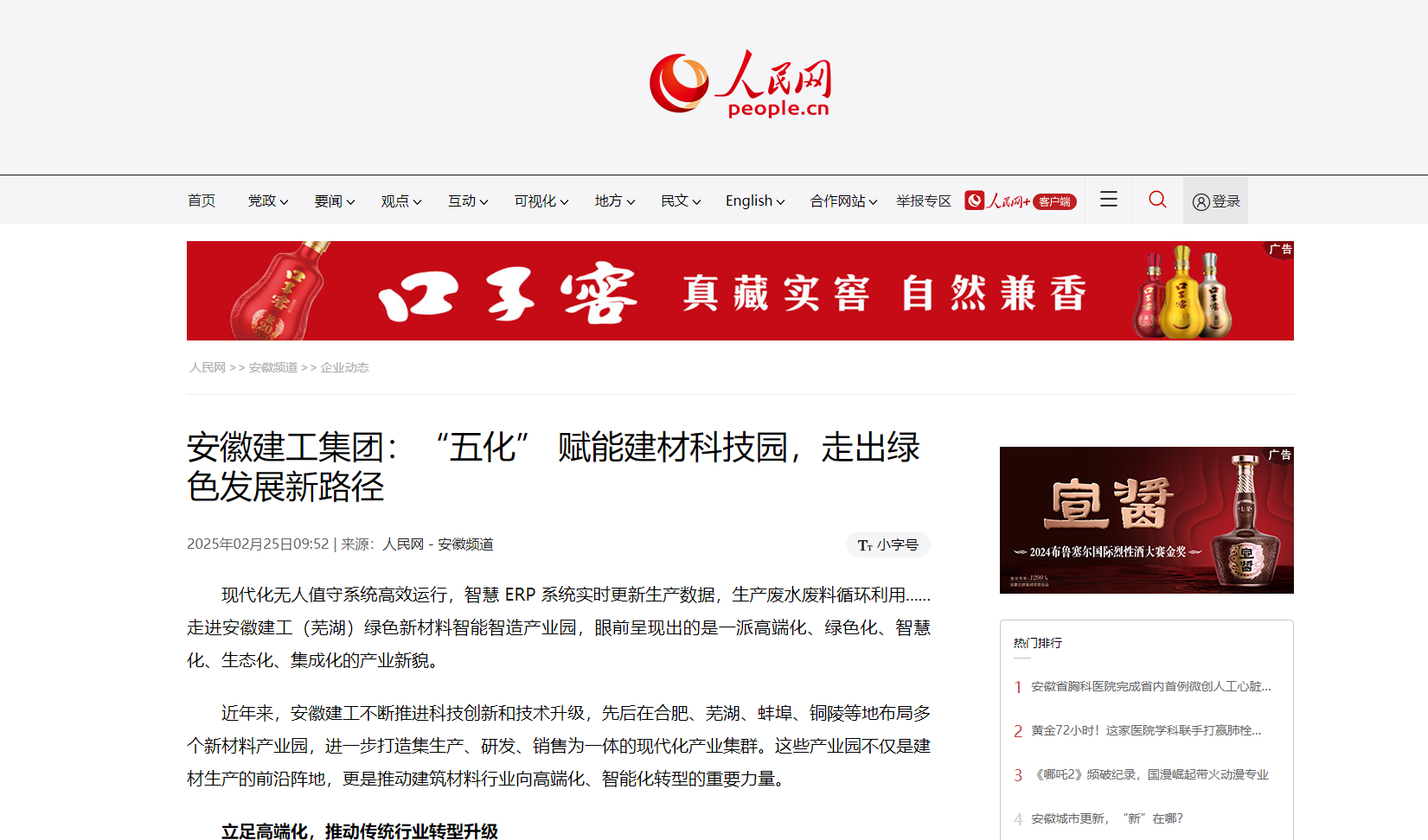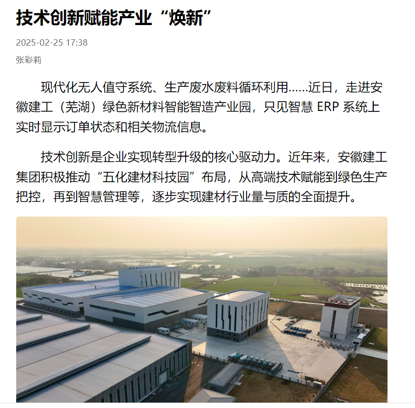 近日,人民網(wǎng)、安徽日報等多家媒體聚焦建工建材“五化”科技園布點工作,引發(fā)廣泛關注。