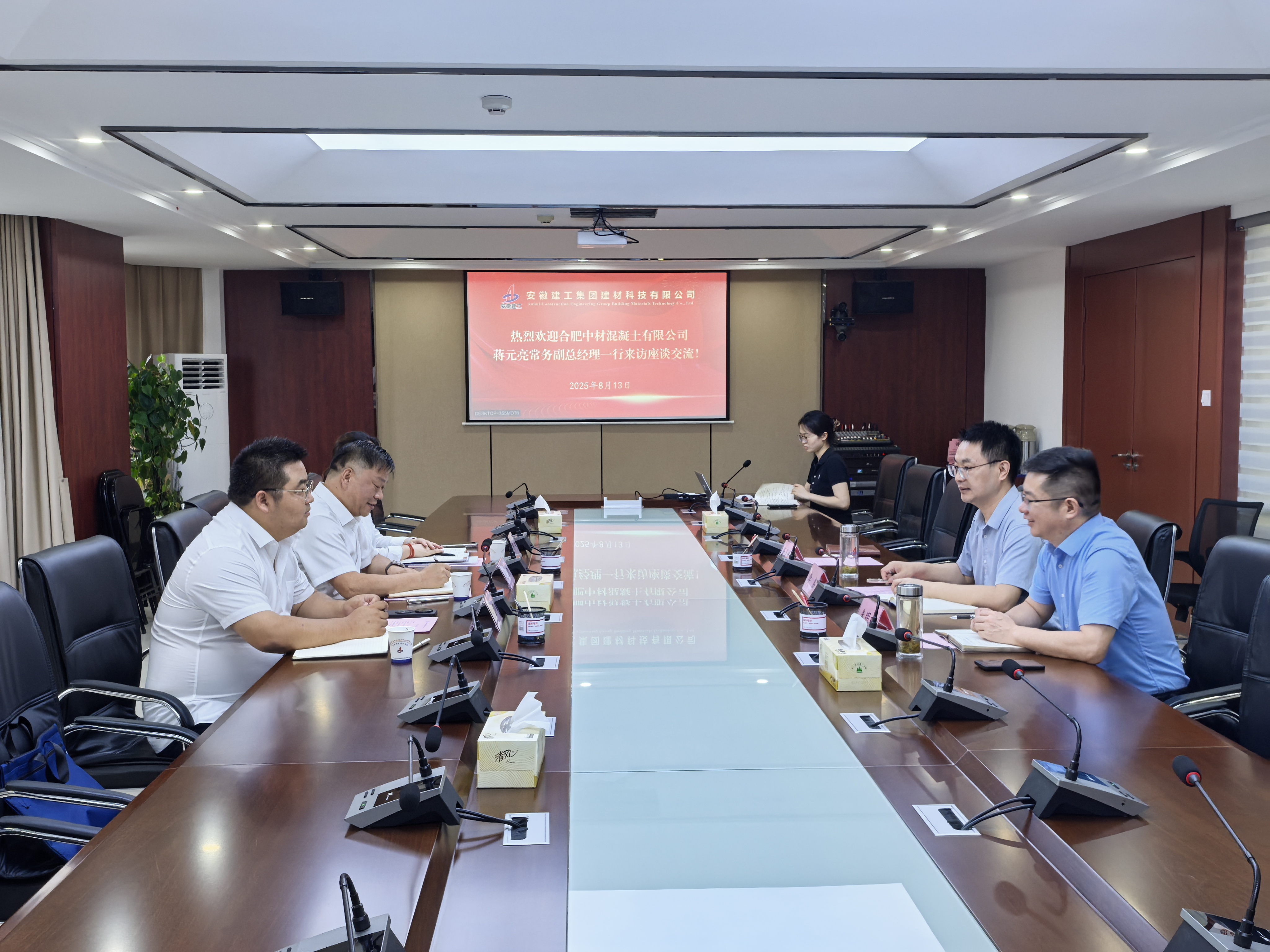 8月13日下午,合肥中材混凝土有限公司(簡稱:“中材商砼”)常務(wù)副總經(jīng)理蔣元亮一行到訪建工建材。建工建材黨委副書記、董事、副總經(jīng)理李鑫熱情接待并主持召開座談會,就行業(yè)未來發(fā)展方向、合作前景開展深入交流。