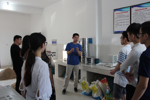 質(zhì)量管理中心員工帶領(lǐng)實(shí)習(xí)生現(xiàn)場(chǎng)參觀了膠凝材料室、集料室、試拌室、力學(xué)室和養(yǎng)護(hù)室,詳細(xì)介紹了質(zhì)量管理過(guò)程中使用的儀器設(shè)備與試驗(yàn)方法,就水泥膠砂強(qiáng)度、砂石篩分析以及混凝土抗壓強(qiáng)度等試驗(yàn)進(jìn)行了演示。還系統(tǒng)介紹了預(yù)拌混凝土與干粉砂漿的生產(chǎn)工藝流程,對(duì)各個(gè)環(huán)節(jié)的質(zhì)量控制作了充分講解,并針對(duì)實(shí)習(xí)生提出的問(wèn)題進(jìn)行了逐一解答。