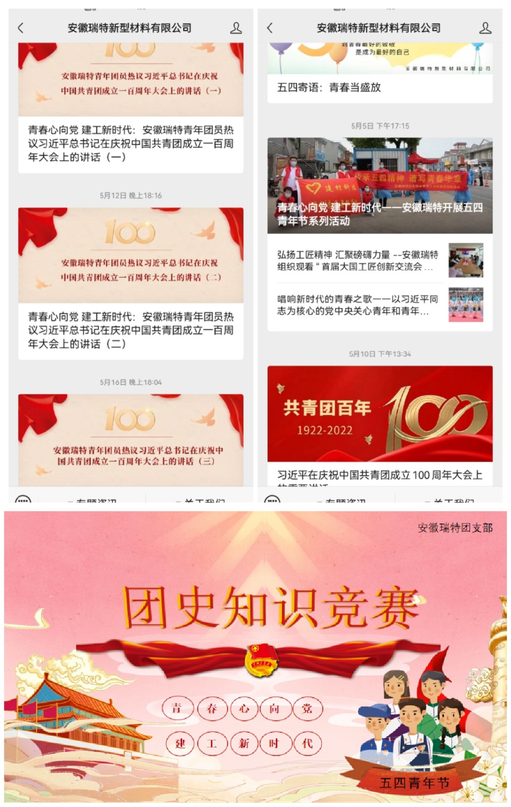 青春心向黨 建工新時(shí)代 ——安徽瑞特5月慶祝建團(tuán)百年系列活動(dòng)紀(jì)實(shí)